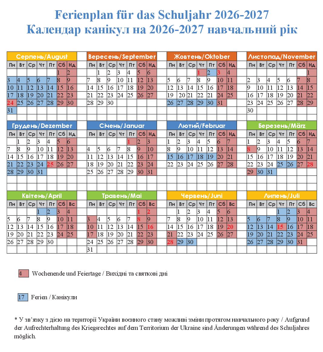 ⇓ Календар канікул DSK на 2026-2027 навчальний рік ⇓